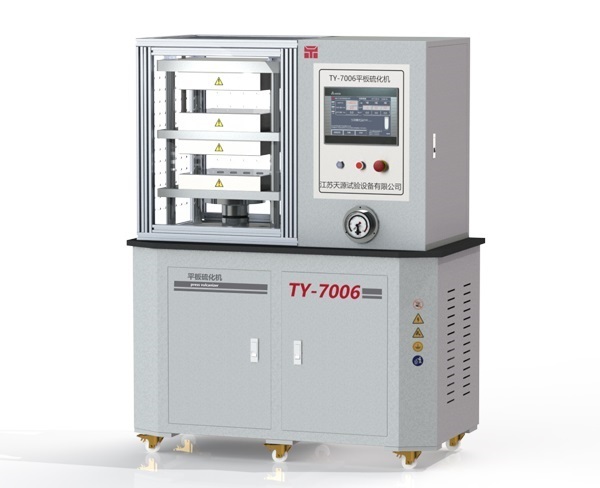 TY-7006平板硫化机装有PLC程式控制彩色触摸屏,人机界面操作系统,可设定压力、温度、时间和排气次数,硫化过程显示及监控,所设模压程式全自动完成。
